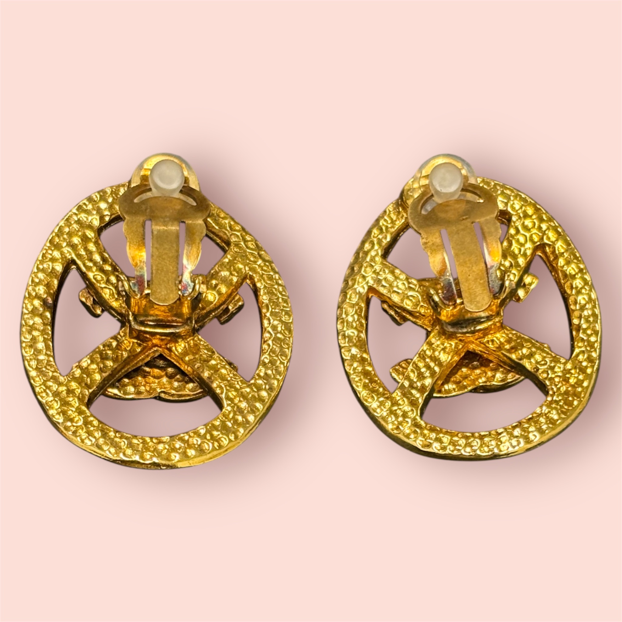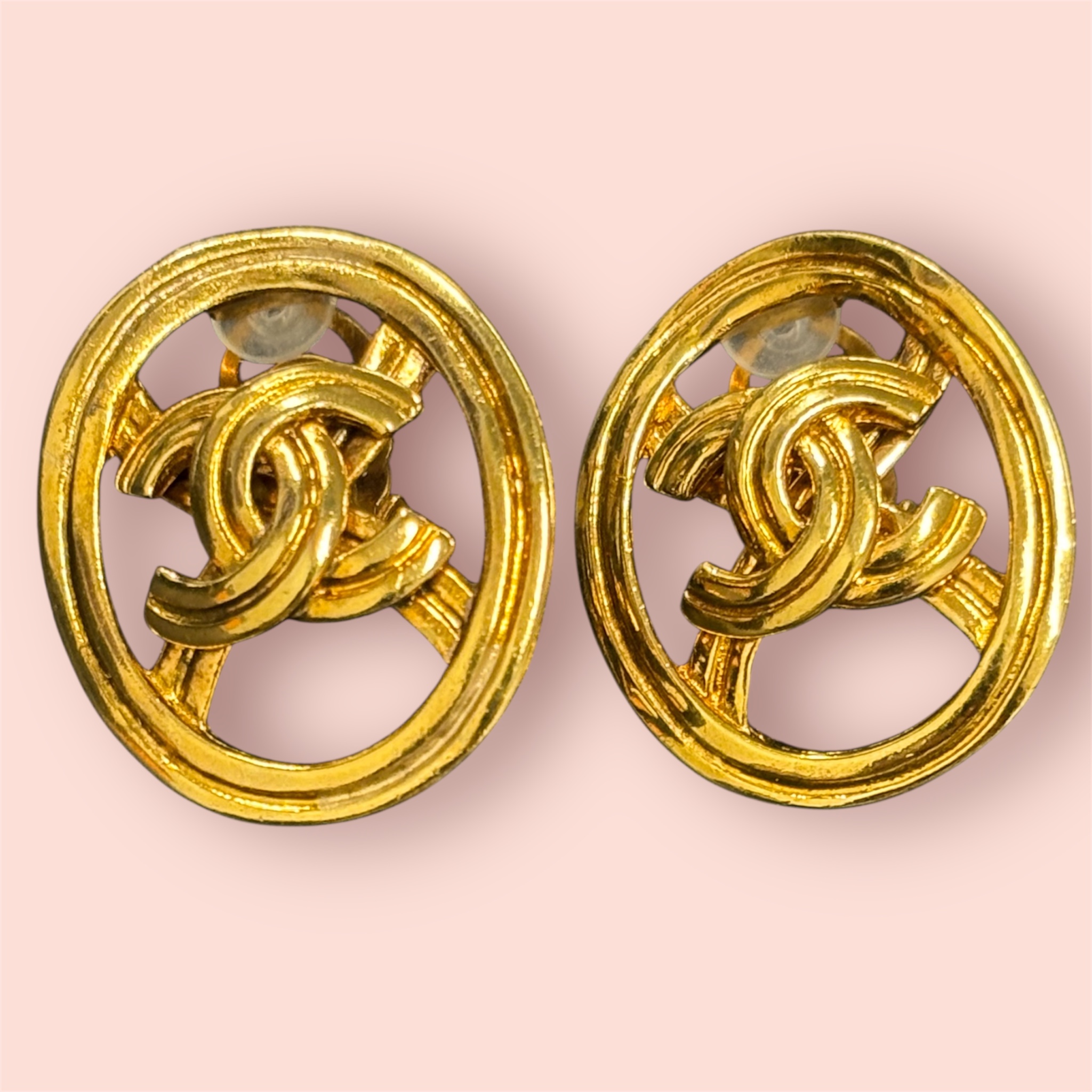 Chanel Rectangle Shape Clip on Earrings with CC logo in gold plated base metal.