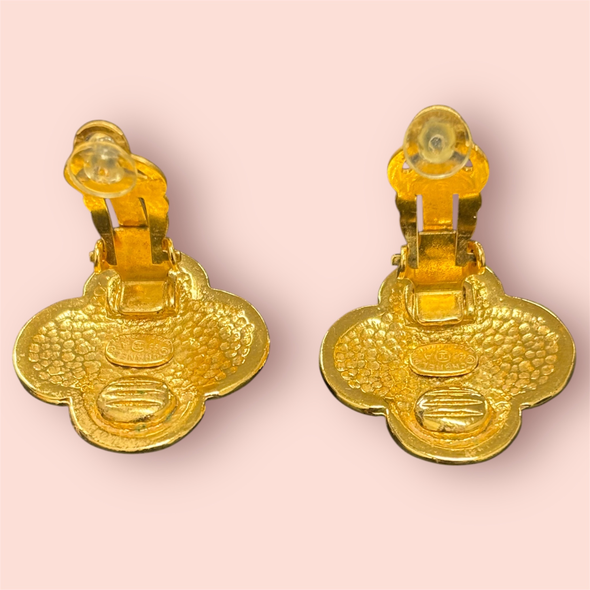 Chanel Rectangle Shape Clip on Earrings with CC logo in gold plated base metal.