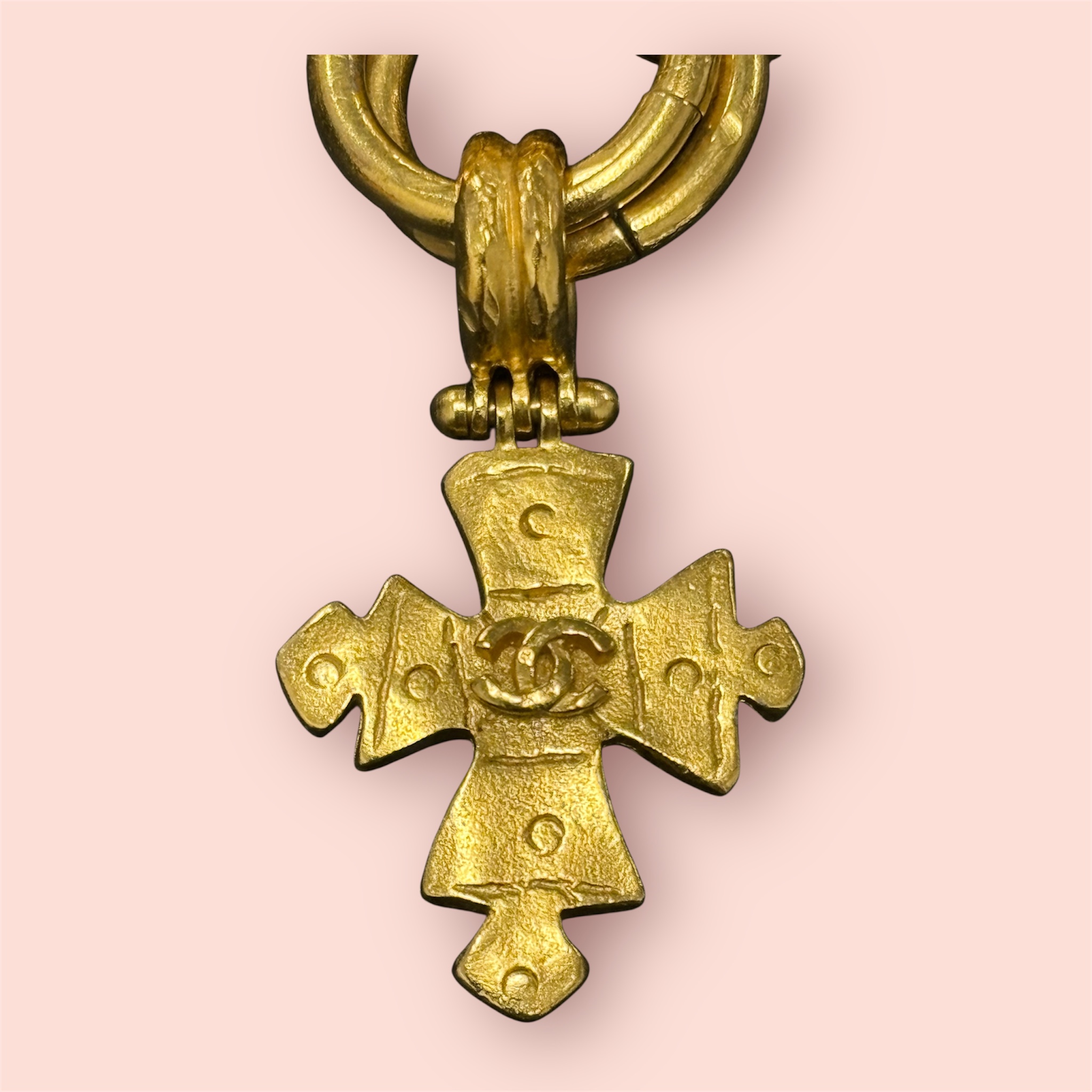 A CC logo is at the center of a Celtic cross charm hanging from a heavy double link bracelet, measures 8.5 inches, fits wrist size up to 6.25"